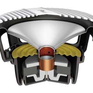 En la parte interna, su diseño de motor simétrico combinado con una suspensión de alta resistencia optimizan la estabilidad, la linealidad y la reproducción de sonido impecable con una baja distorsión.